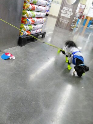 Trying on some new threads at Petco. He was not too happy about those shoes, or hat… Lol.I am avoiding going into detail about the struggles we encountered. I don’t want this—neither is there a need for this— to be a play-by-play, day-to-day run-down of life with Kody. Maybe because it is 12:29 am and my alarm is set for 5:00 and allIwannadoisleep, or maybe, it’s because, (and I’m sure this is the more precise reason) I don’t want to relieve the pain of loving someone so much, and having to give him up. Although I thought I was about 90% healed, as I write this, it is clear that that percentage is a little too ambitious. We have come a long way since those first days when we had to find him a new home. I had to get rid of everything of his so I could stand being in my home without being blue.